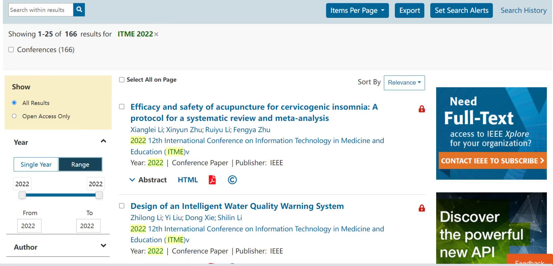 All the papers in the proceedings of ITME2022 are included in the IEEE Xplore Digital Library.